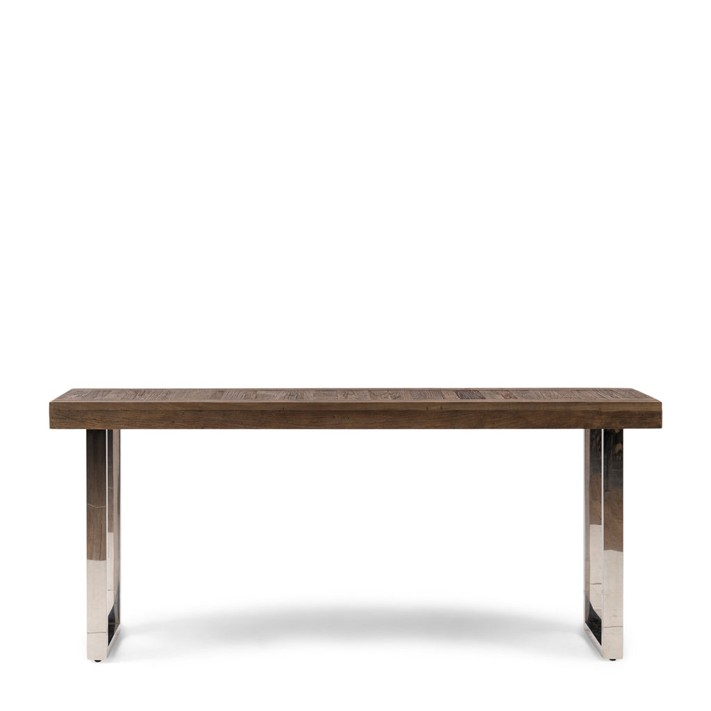 Een eigentijdse sidetable van gerecycled iepenhout, wat mooi verwerkt is in het bovenblad. Het chromen onderstel heeft zacht glanzende sledepoten. Een sidetable kan overal in huis staan, en heeft dan op elke plek een eigen functie.