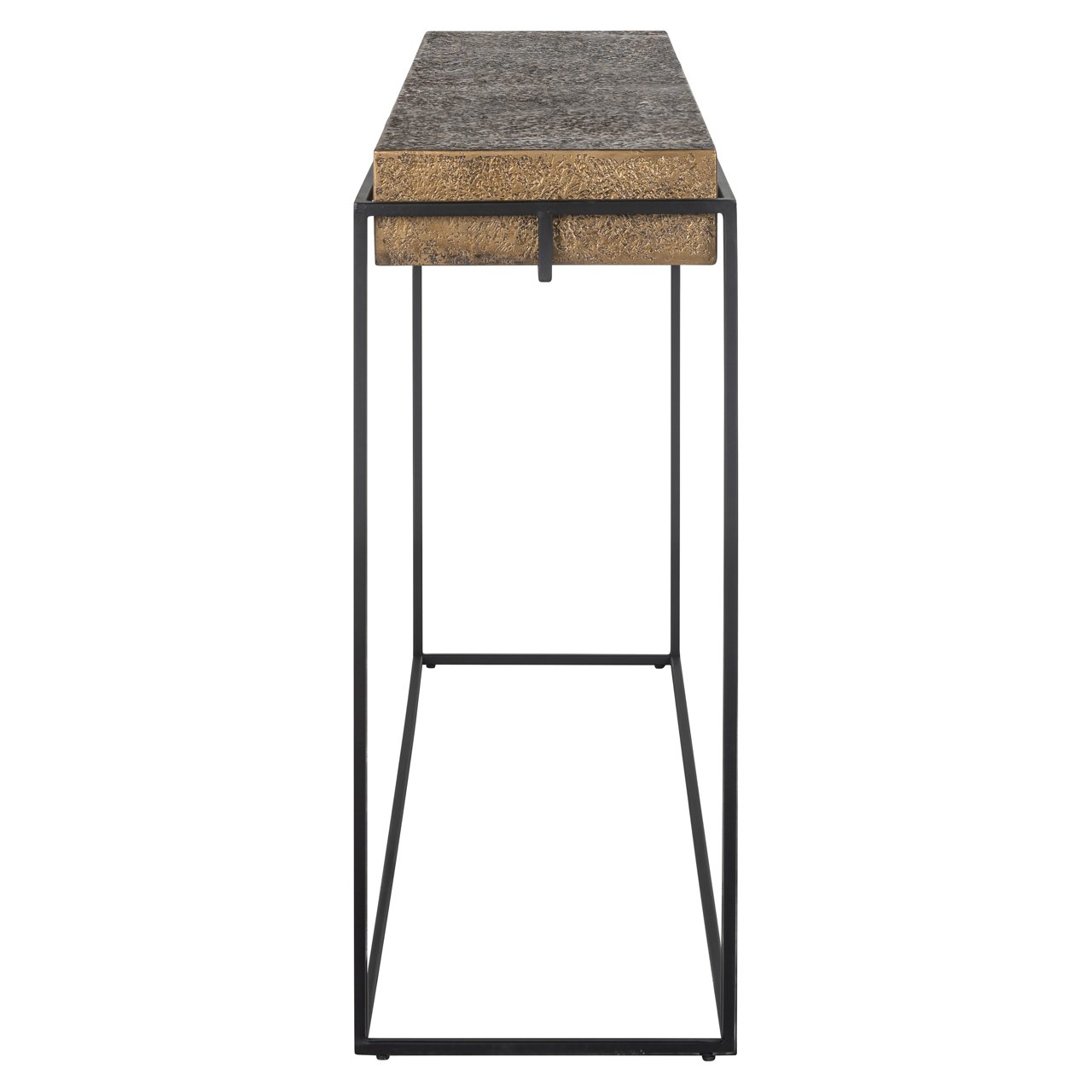 Onze Dover is een prachtige wandtafel in een industriële stijl. Elegant en stijlvol, het combineert perfect slanke ijzeren poten met een uniek tafelblad. Dankzij de verstevigde structuur is het een robuust dressoir. Functioneel en veelzijdig, het is gemakkelijk te combineren in elke decoratieve stijl.