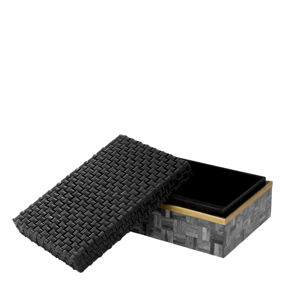 Versierd met gemengde harspatronen in elegant zwart en grijs, biedt deze doos niet alleen een chique opbergoplossing, maar staat ook als een iconisch stuk in de luxe collectie van Eichholtz.