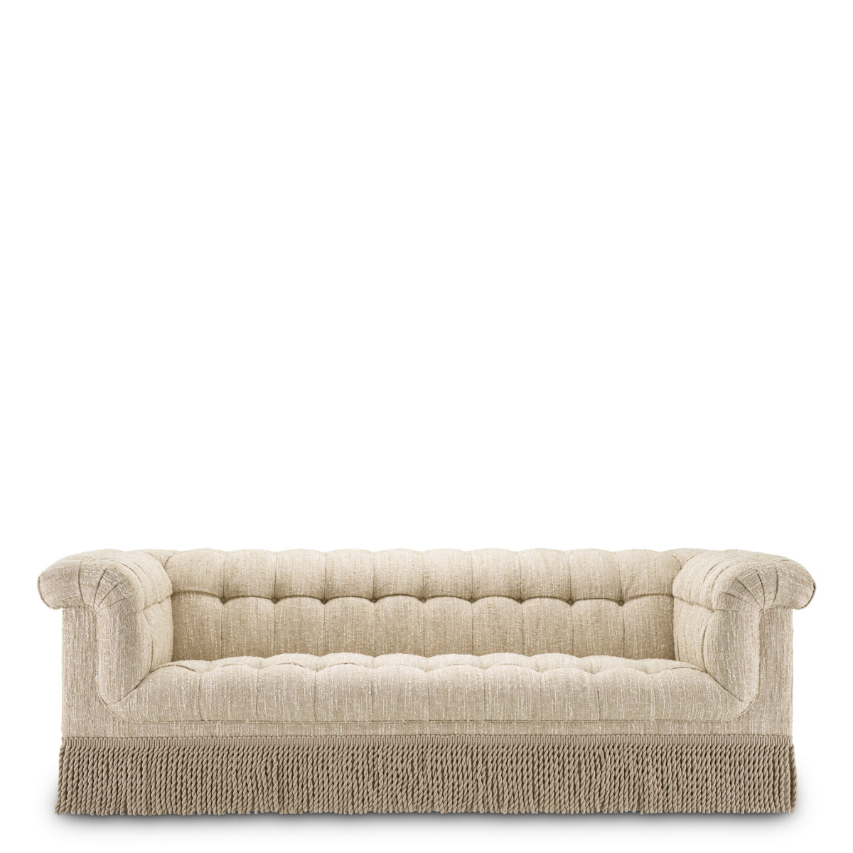 De Dorantes-bank van Eichholtz voegt tijdloze elegantie toe aan hoogwaardige interieurs. Bekleed met luxe bouclé 'Sonata' in crème en uitgevoerd met verfijnde knoopdetails en subtiele franjes, combineert dit iconische model vakmanschap, comfort en stijl.