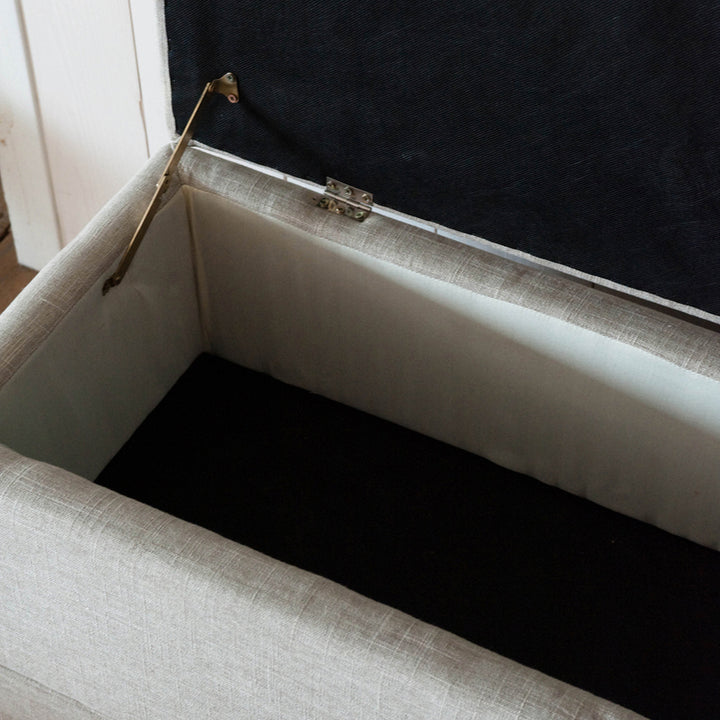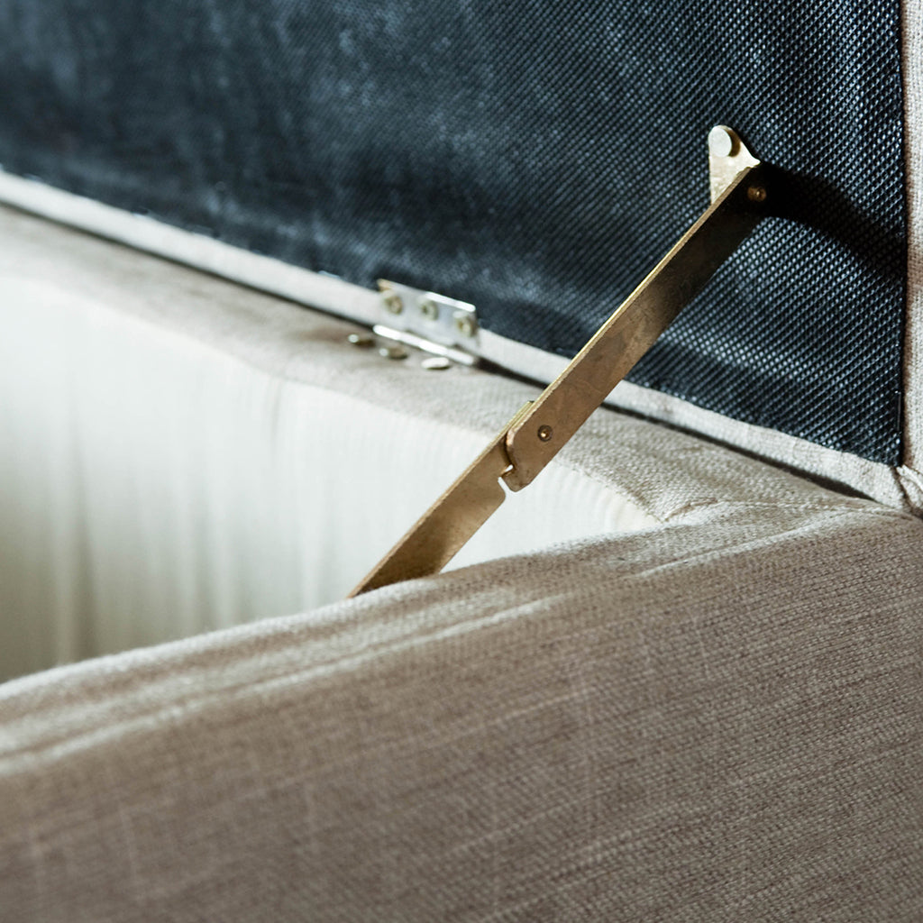 Dit gecapitonneerde bankje staat prachtig voor het bed. De klep kan open en zorgt voor veel opbergruimte bijvoorbeeld voor het beddengoed. Verkrijgbaar in verschillende kleuren, linnen gecombineerd met polyester en pellini leer.