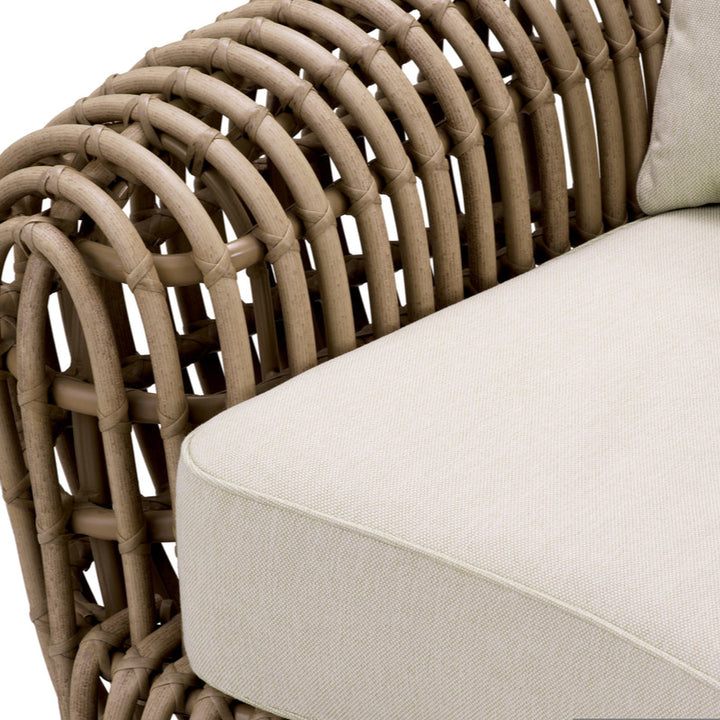 Verhoog uw exterieur met dit verfijnde stuk, dat ambachtelijk vakmanschap en modern comfort combineert. Stijlvol imitatierotan vormt een aanvulling op viola-zandstof en veel kussens zorgen voor een zachte afwerking. Leun achterover en ontspan met vrienden en familie om te genieten van het comfort van dit tijdloze ontwerp.