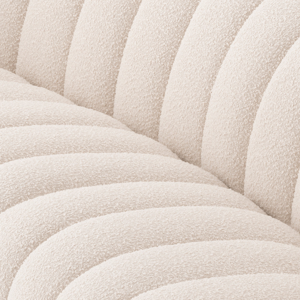Mit seinem cremefarbenen Bouclé-Bezug verleiht Sofa Kelly Ihrem Wohnzimmer viel Charme und Gemütlichkeit. Dank seines sanft geschwungenen Designs und der tiefen Steppnähte bietet dieses geräumige Sofa außergewöhnlichen Sitzkomfort.