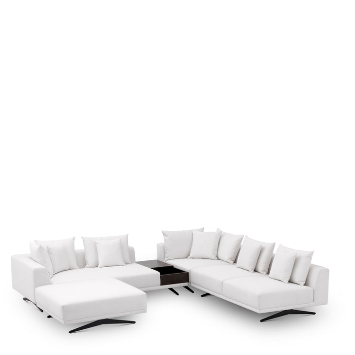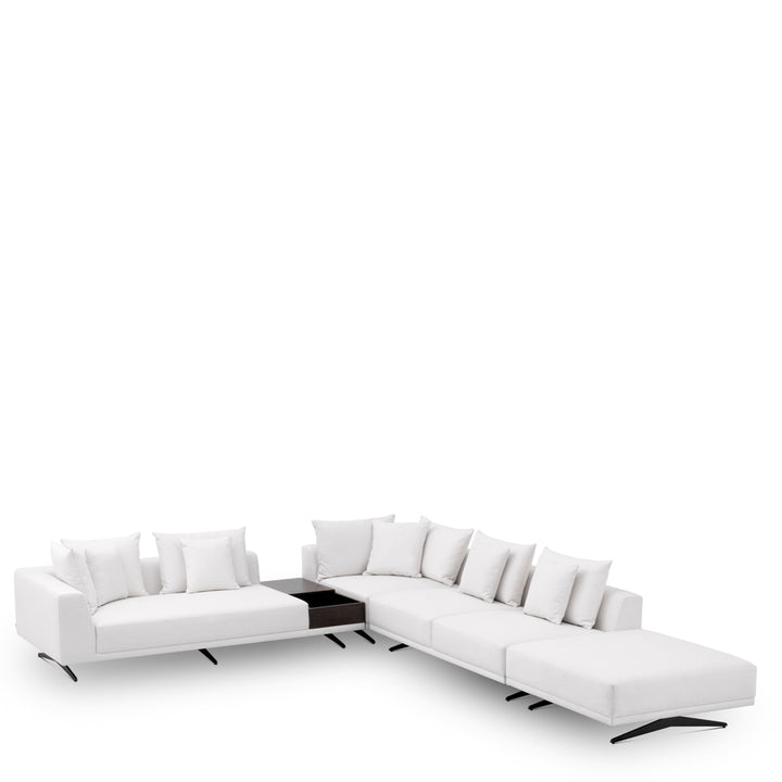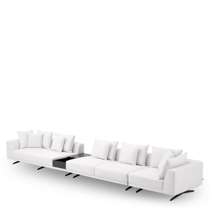 Inklusive integriertem Beistelltisch in dunkelbraunem Furnier bietet Sofa Endless zahlreiche Aufstellmöglichkeiten.