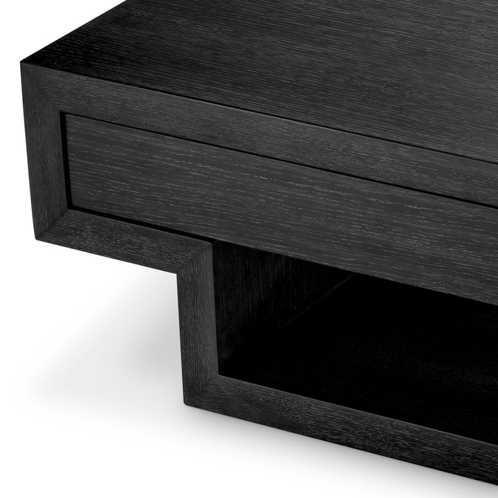 Entdecken Sie den Gipfel des Luxus mit dem Eichholtz Rialto-Couchtisch, einer modernen Einrichtungslösung mit anthrazitgrauem Eichenfurnier und praktischen Schubladen.