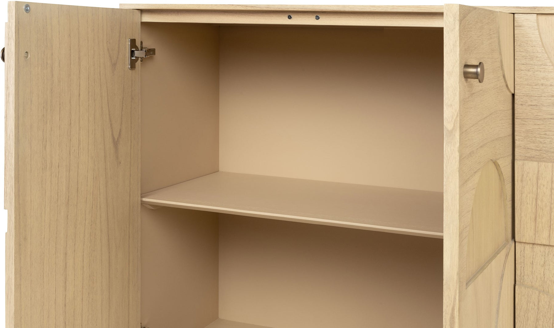 Enrich your interior with the Dressoir Zulgo by Versmissen. The designs and quality furniture by Versmissen are unparalleled. Dressoir Zulgo is made of high-quality materials with an eye for detail. Zulgo is finished in a stylish natural color and is made of Mindi wood. The combination of sustainable materials and elegant design gives Zulgo a harmonious look. With a height of 107.5 cm, width of 172.5 cm and a depth of 50 cm, it is a piece of furniture that is versatile and functional and can be combined with all living styles.