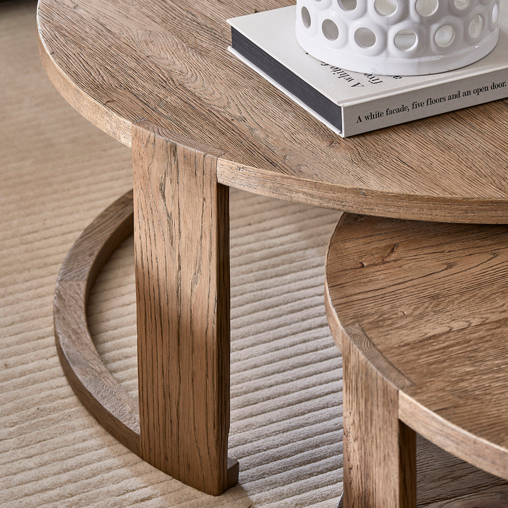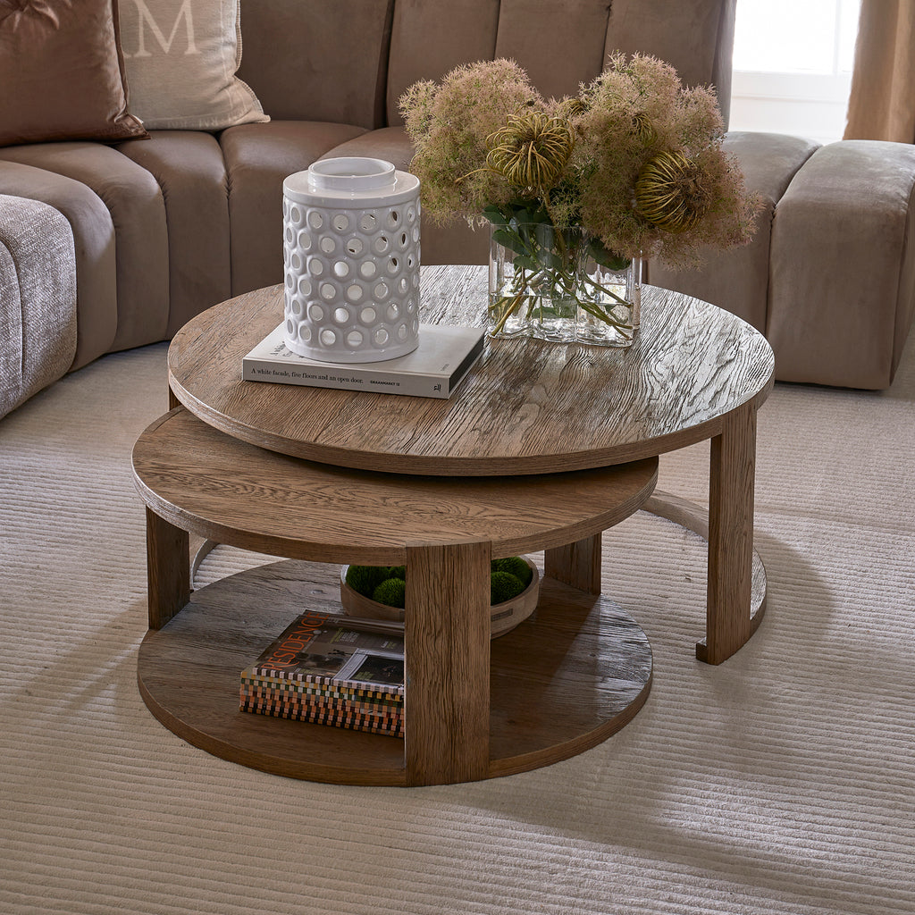 Creëer een warme sfeer in je huis met de salontafel Astoria. Deze set van 2 tafels, is gemaakt van gerecycled eikenhout met een verweerde look. De unieke charme van het hout brengt karakter in je interieur.
