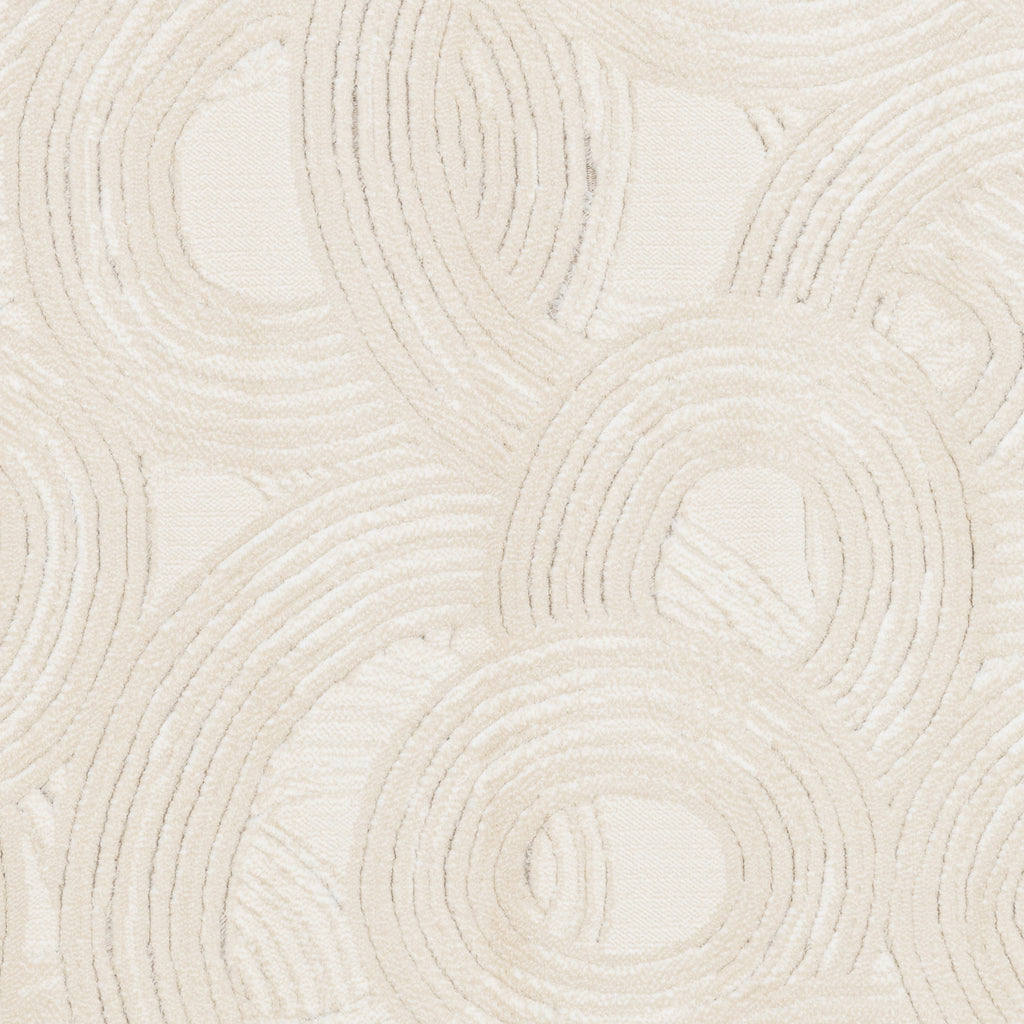 Kijk mee naar de Delfina Vloerkleed in de kleur Crème. Het is een rond kleed met overlappende cirkelpatronen. Het heeft een crèmekleurige tint en een afmeting van 230 x 160 cm, waardoor het de ideale finishing touch vormt voor je woonkamer.