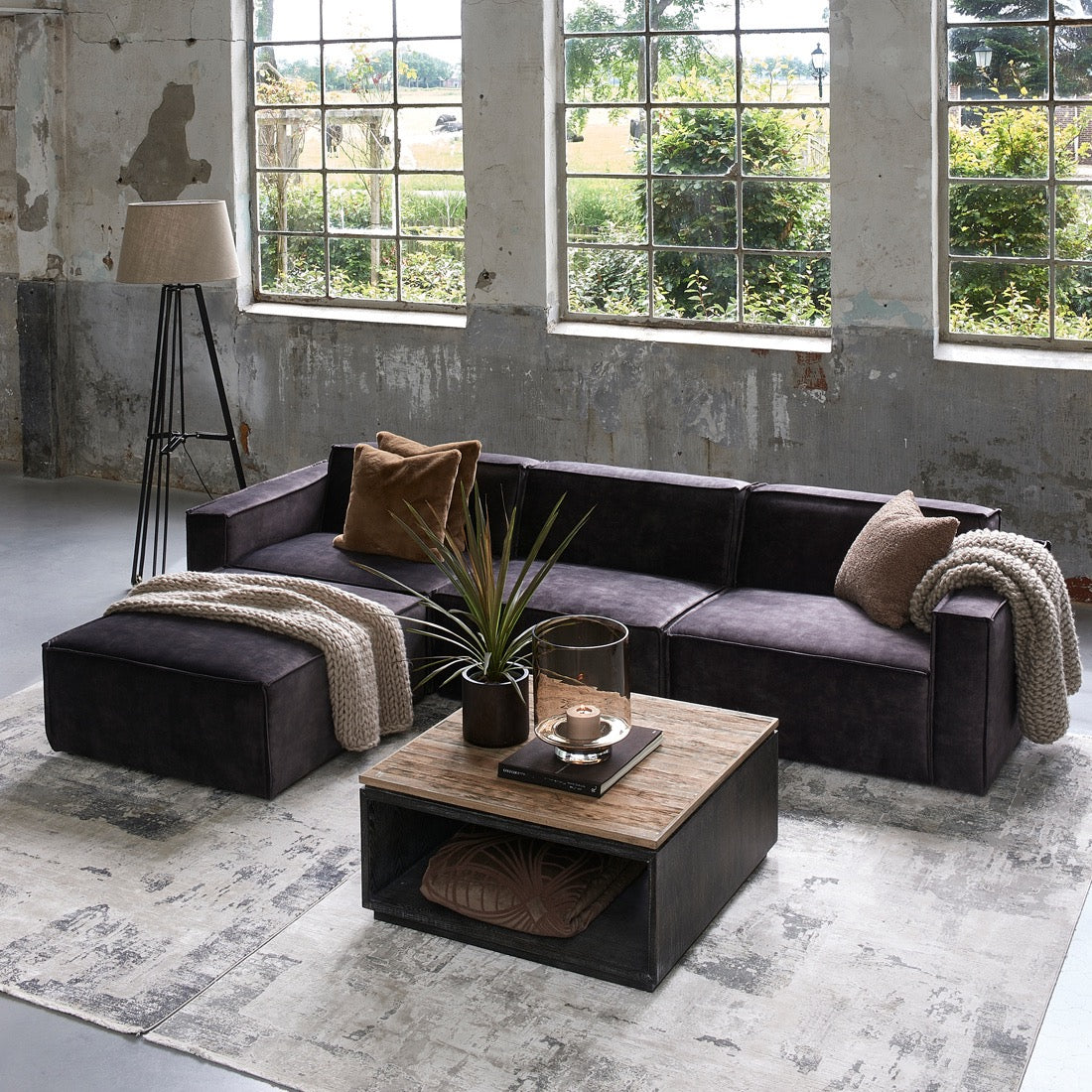 De hocker van Jagger past natuurlijk helemaal in de stoere stijl van dit ontwerp, ook al is de bekleding van polyester velours.
